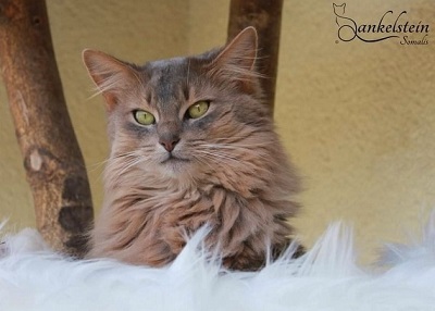 Die Zucht der silbernen Somalis ist u. a. wegen der Farbe nach wie vor eine große Herausforderung und nicht unbedingt etwas für Züchter, die mit ihren Tieren regelmäßig auf Ausstellungen „abräumen“ möchten. Womit ich nicht sagen möchte, das silberne Somalis auf Ausstellungen keine Chance haben. Es ist aber oftmals so, dass sie sich in vielen Fällen einfach noch nicht mit der Konkurrenz auf der Bühne „messen können“ oder man sie manchmal wegen starkem Rufismus gar nicht ausstellen kann.