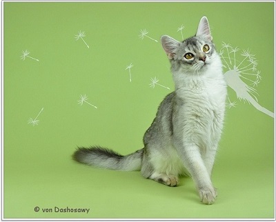 Die Abessinier und Somalis sind ursprünglich durch die Einkreuzung von Persern und/oder Britisch Kurzhaar zum „Silbergen“ gekommen.